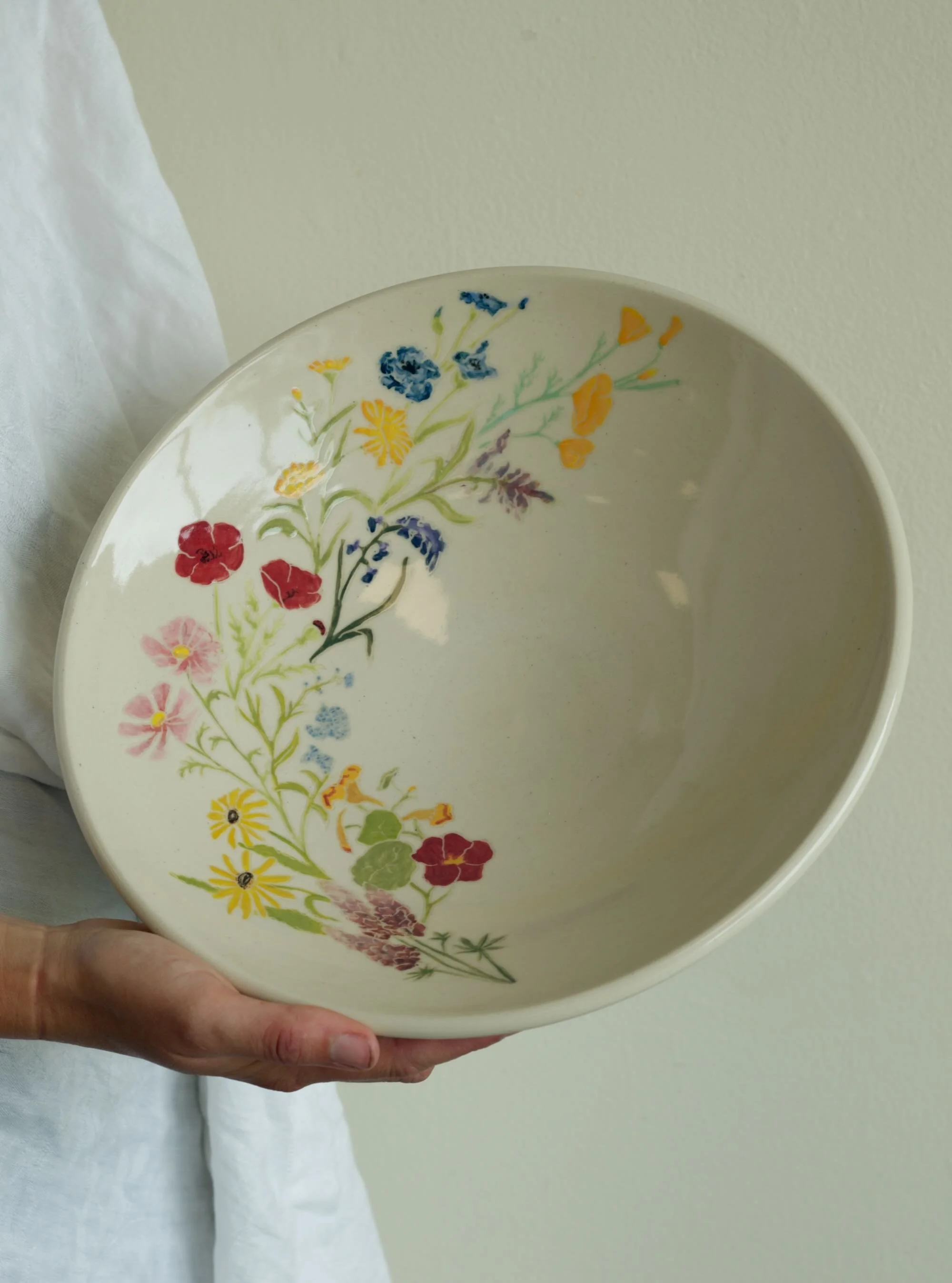 Give a gift of a large serving bowl! Bowls range from 12-14'“ across and are quite shallow. Bowls could have florals important to the wedding couple, or perhaps a school of fish flickering around the edge. Serving bowls go for $300.